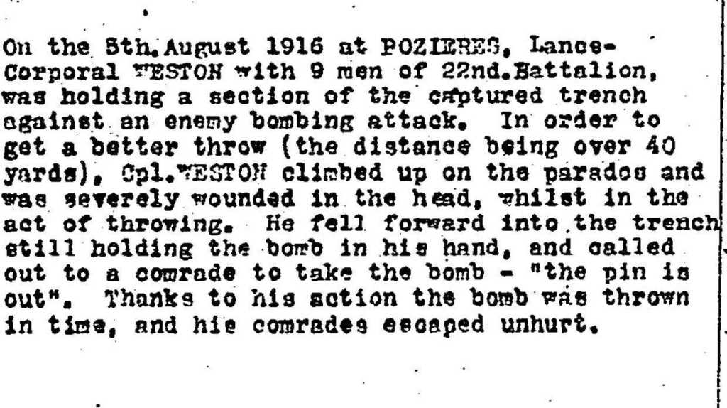 Now, 107 years to the day since Weston was severely wounded in action at the Battle of the Somme, a new grave plaque is to be unveiled, and his story told at a ceremony in his honour on Saturday morning. His actions that day reportedly saved the lives of several of his comrades and he was awarded the Distinguished Conduct Medal and the Russian Cross of Saint George (Third Class).