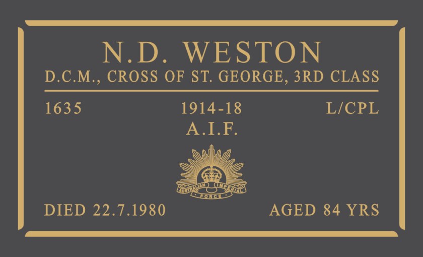 Lance Corporal Norman Douglas Weston (Norm), originally from Omeo, Victoria, Australia, had lain almost forgotten in Havelock Cemetery for more than 20 years, before volunteer grave cleaners became intrigued by his presence there and researched his past.