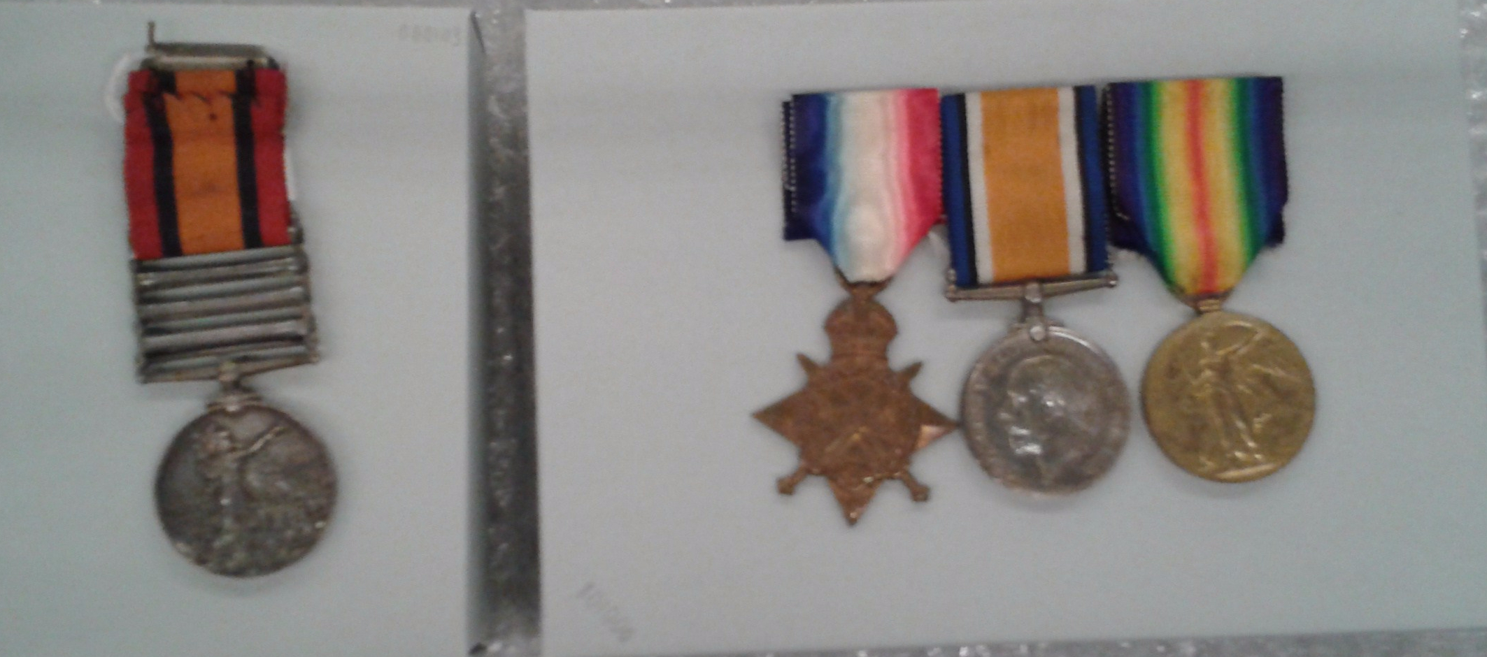 Previous Image Next Image 2015-03-22 12.34.45 Pte Samways three WW1 medals, and on the left his father’s Boer War Medal