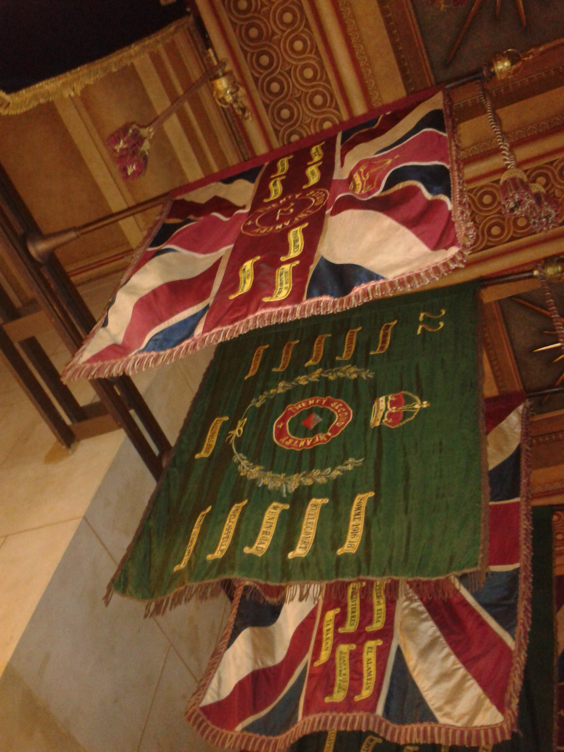 Photograph: 22nd Battalion Colours in the Crypt of the Melbourne Shrine of Remembrance.