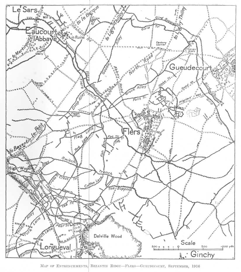 Elsewhere immediately to the left of the 1st Brigade the British had successes thus the Mouquet Farm salient was now a little less pronounced, and immediately to the right of the 2nd Brigade the Scots recorded successes in Munster Alley. There were also successes further along the line at Guillemont though operations at High Wood had failed.