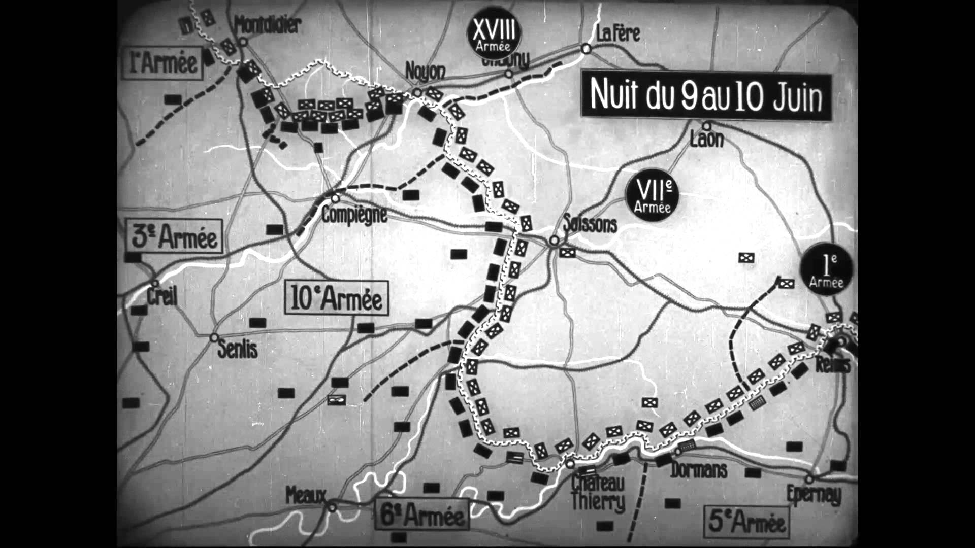 26th May 1918: French staff were startled that statements from two German prisoners indicated that a massive attack was going to take place on the Chemin des Dames (map above right) in the coming days. Headquarters of the British IX Corps and French XI Corps were warned at about 4pm. Local reserves were brought up and the British artillery opened up in ‘counter-preparation’.