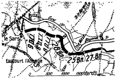 attack, but with rain falling constantly day after day it kept being postponed. By the end of the month I Anzac Corps, now comprising four Australian Divisions took over from British XV Corps outside of Flers. On the 3rd November the 5th Australian Division was relieved in the forward position by the 2nd Australian Division newly arrived from Ypres. [Click link for geo-referenced trench map reproduced with the permission of the National Library of Scotland]