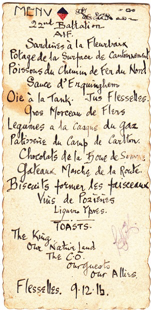 Winter on the Somme: features photographs, signed Battalion menus, Christmas card