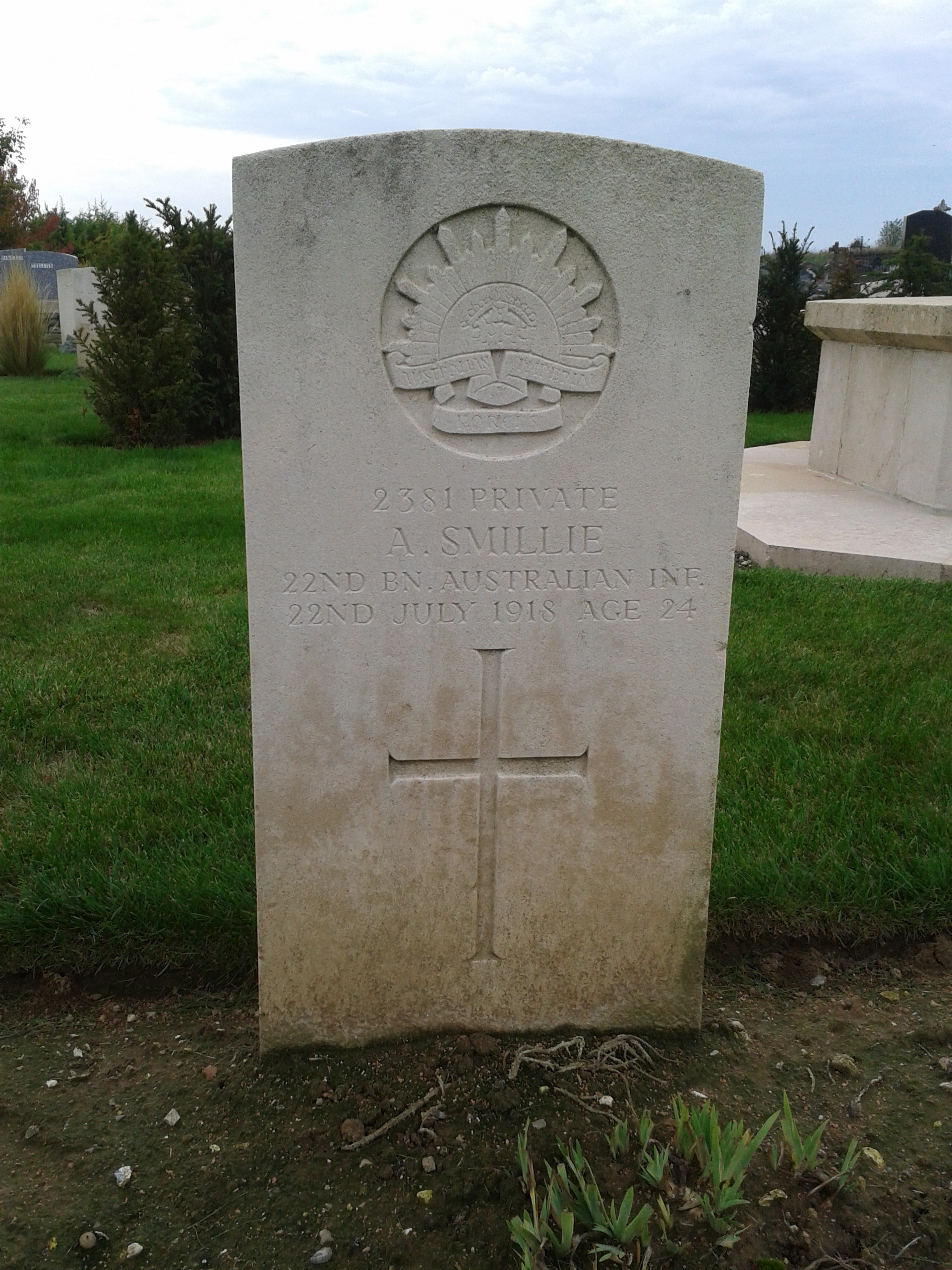 | 2381 | Private | SMILLIE | A | 24 | Died of Wounds | 22/07/1918 | France | ST. RIQUIER BRITISH CEMETERY |