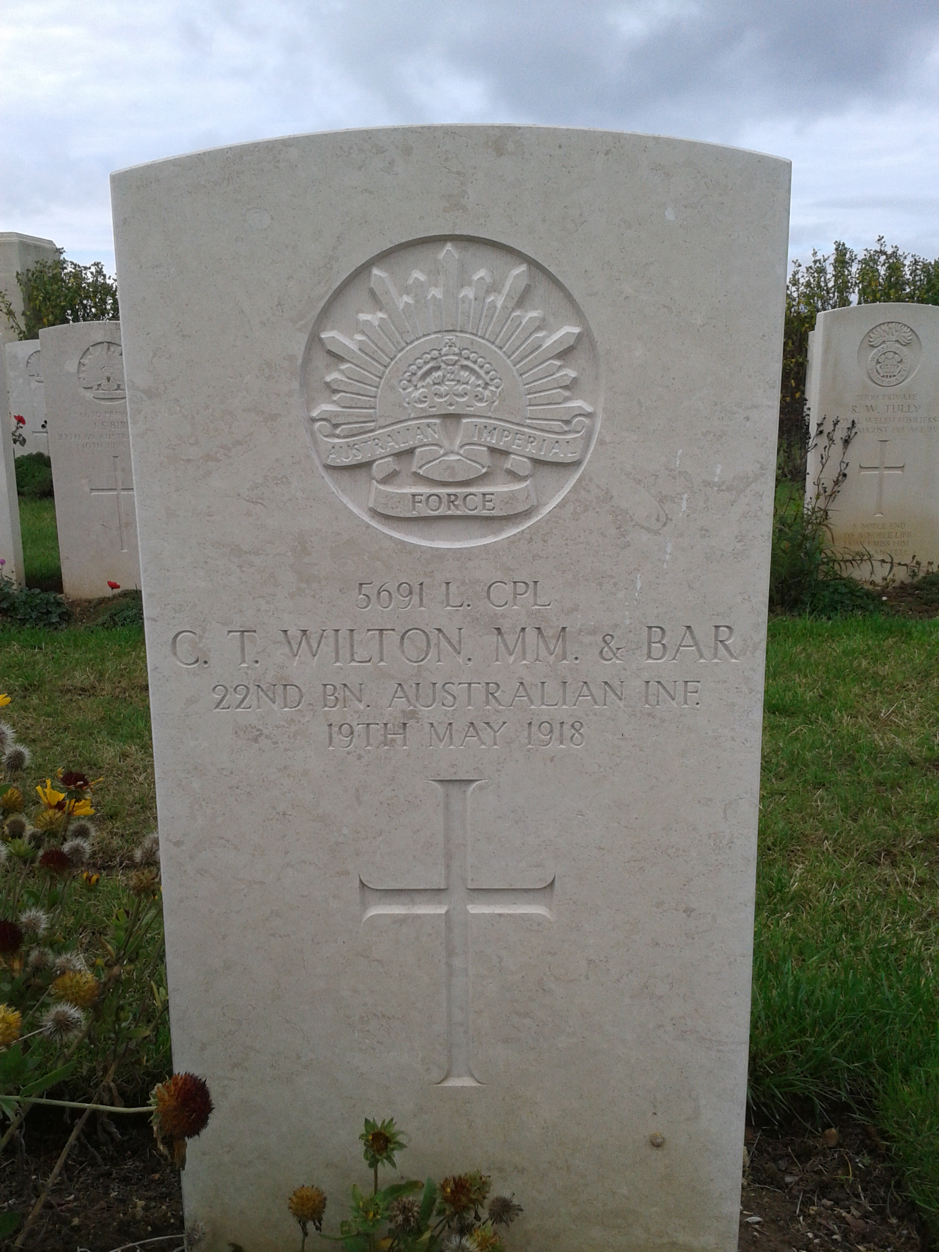 | 5691 | Lance Corporal | WILTON | C T | 31 | Killed in Action | 19/05/1918 | France | DIVE COPSE BRITISH CEMETERY, SAILLY-LE-SEC |