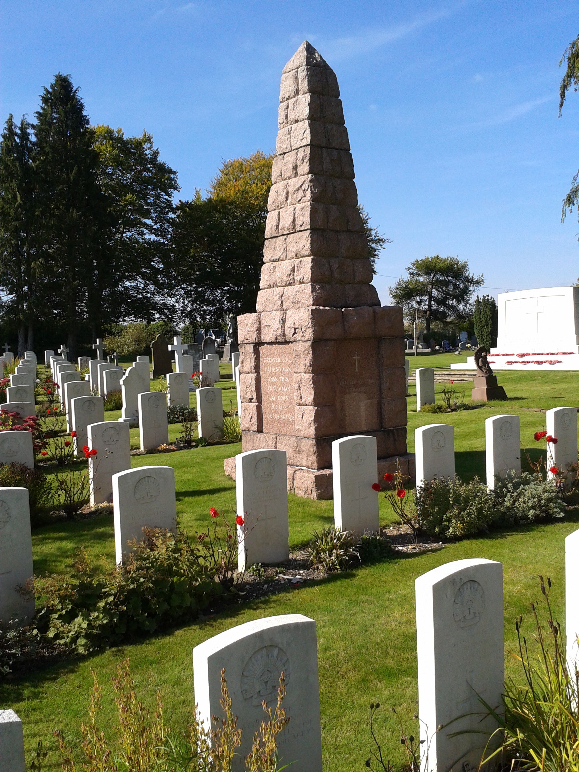 Fargo was a Military Hospital that was also used for prisoners of war. It is likely that most of the 141 Australians and thirteen Americans buried in Durrington Cemetery would have been patients at Fargo. Included within the Durrington Cemetery is 6177 Pte HC Canham of the 22nd Battalion who died of pneumonia in January 1917. Also in the cemetery is a monument dedicated the men of the 1st Training Battalion (photograph right) that died and were located at the nearby Lark Hill training camp.